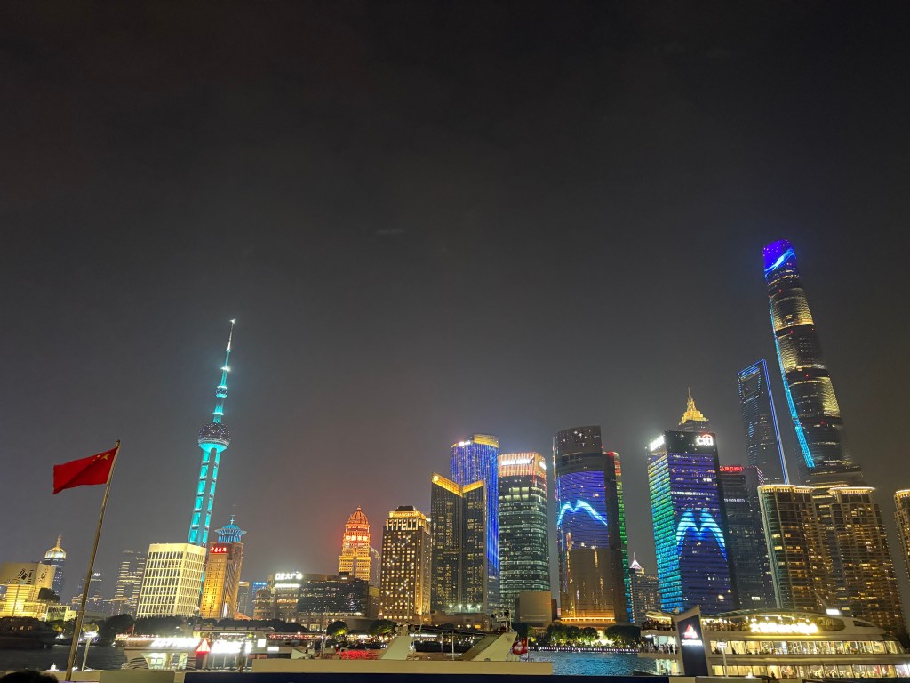 We anticipated large crowds and possibly a drone show at the Bund. To our surprise and disappointment, there was neither. We did see a large number of police officers and military servicemen keeping the crowds organized and moving according to their specific directions. While not finding mountains or seas of people, and despite having recently been at the Bund, the well-lit buildings were still captivating.